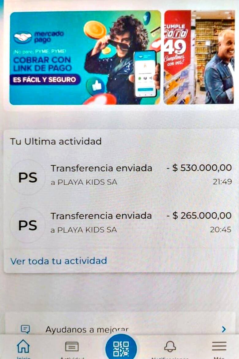 comidas. Primero hicieron un pago por 265.000 pesos y luego otro contra un