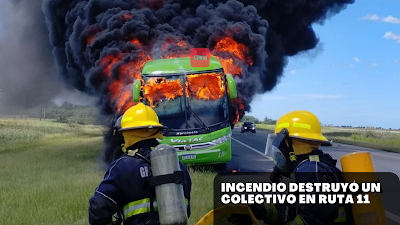Un colectivo de la empresa Vía TACC se incendió en la tarde de este lunes en la Autovía de la Ruta 11 a la altura de General Lavalle en la mano que lleva hacia Conesa.