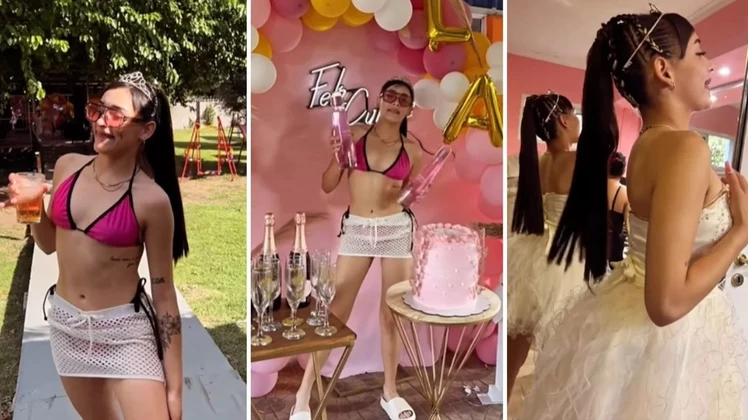 En las imágenes se ve a Lara dentro de una pileta, bailando y con un vestido blanco de quinceañera. La fiesta se realizó en noviembre del año pasado y se estima que tuvo lugar en una quinta alquilada, donde había música, mesas con varios invitados y hasta un sector especial donde estaba la torta de cumpleaños.