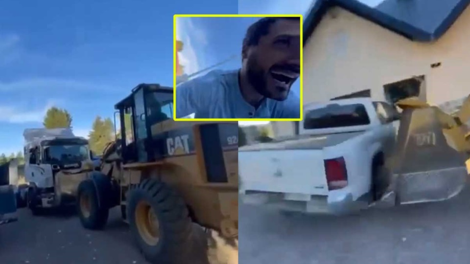 máquina cargadora que estaba estacionada allí y trató de embestir a su primo,