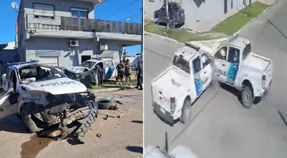 Dos patrulleros del Comando de Patrulla Sur de la Policía Bonaerense protagonizaron un impactante choque mientras perseguían a una moto en la localidad de González Catán.