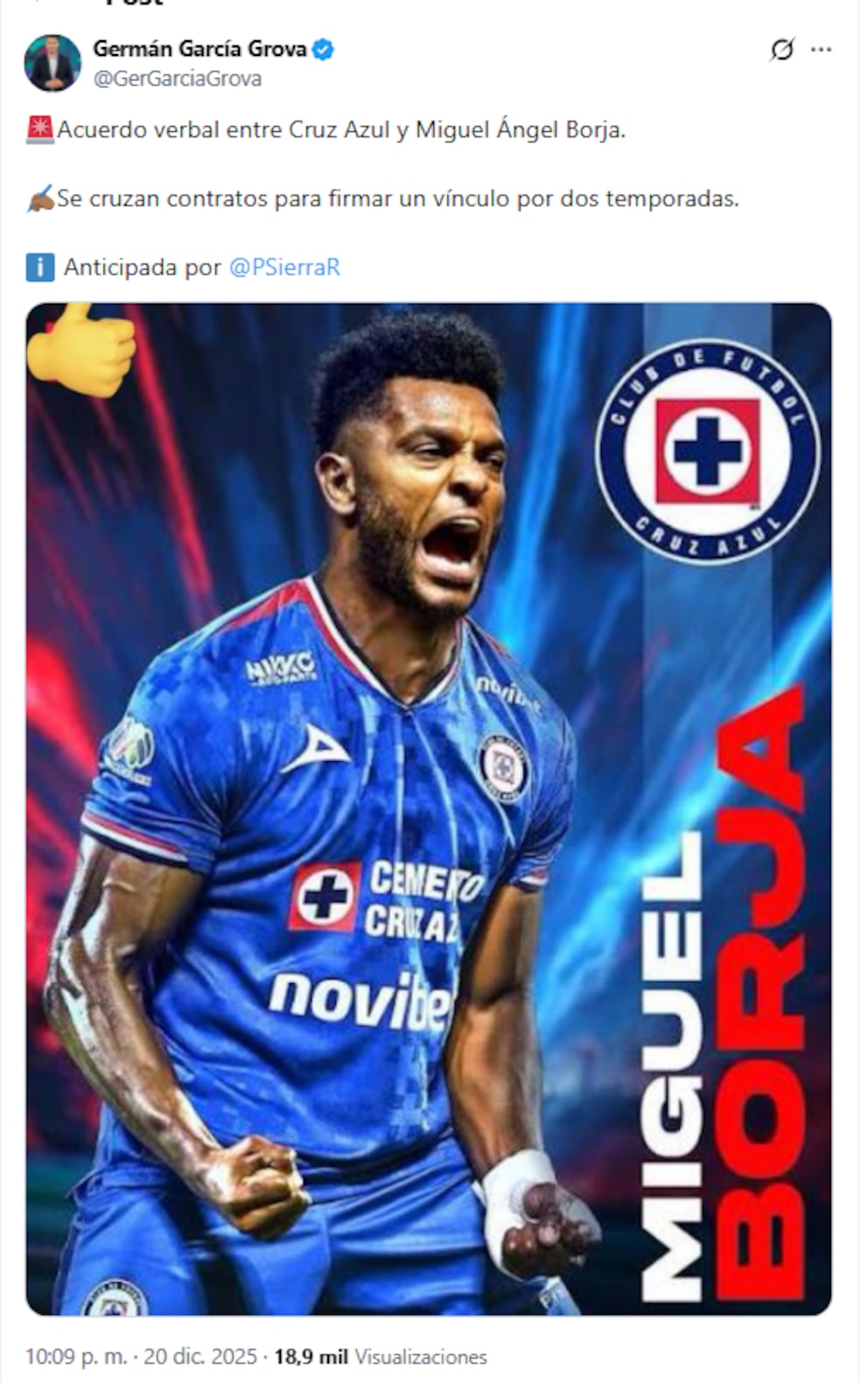 Aun así, según informó el periodista especializado en el mercado de pases, Germán García Grova, Borja pondrá rumbo a México, ya que tiene un acuerdo verbal con el Cruz Azul. Además, el reportero indicó que se están cruzando los contratos para sellar un vínculo que abarque las próximas dos temporadas.