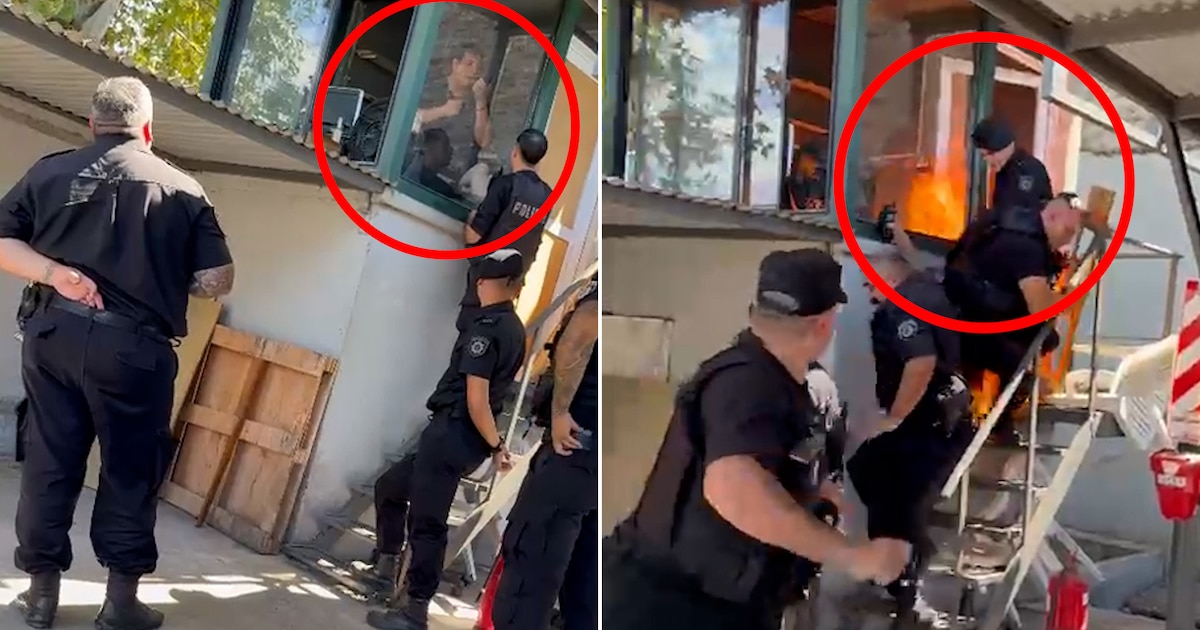 De inmediato, los policías subieron las escaleras y arrinconaron al sospechoso. El operativo parecía haber finalizado, pero no. El trabajador se prendió fuego . Las llamas tomaron todo su cuerpo y alcanzaron a dos agentes que ya estaban dentro de la garita.