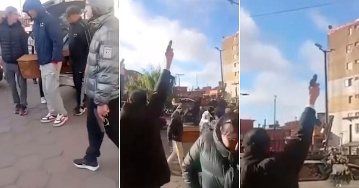 Frente a la cochería donde despedían sus restos, algunos asistentes sacaron armas y efectuaron disparos al aire, mientras motos realizaban ruidos similares a detonaciones.